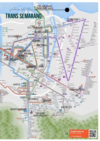PELABUHAN Aksesibilitas TANJUNG MAS BUS RAPID TRANSIT TRANS SEMARANG TERBOYO STS TAWANG KOTA LAMA STS PONCOL JOHAR PECINAN BALAIKOTA LAWANG SAM TUGUMUDA SEWU POO KONG SIMPANG LIMA AKPOL PENGGARON GOMBEL UNDIP METESEH BANYUMANIK VIHARA WATUGONG 13