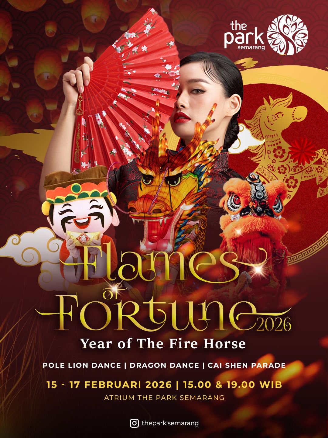 Bersiaplah untuk terpukau dengan atraksi-atraksi spektakuler ini. Sampai jumpa di Flames Of Fortune 2026 : Year Of The Fire Horse hanya di The Park Semarang✨
