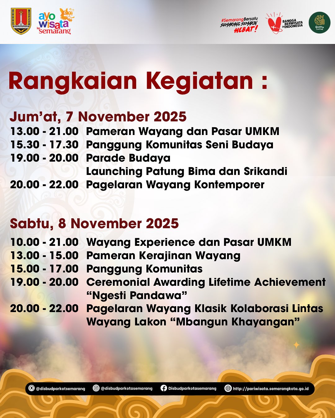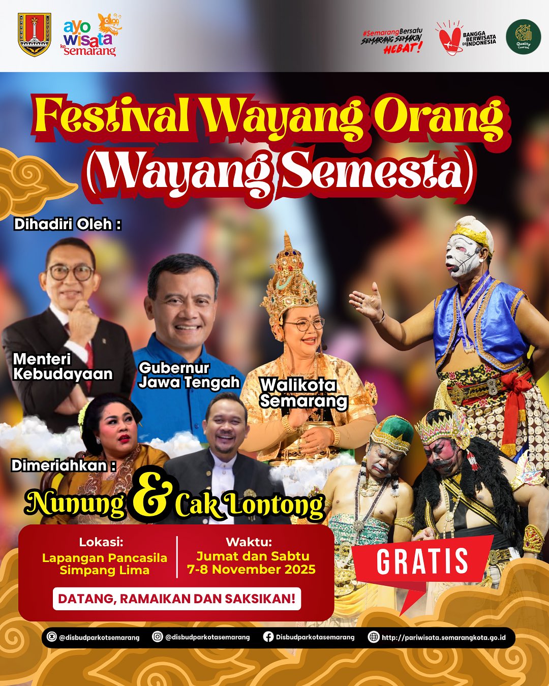 Gratis dan terbuka untuk umum. Yuk ramaikan dan saksikan kemegahan budaya Nusantara di jantung Kota Semarang! ❤️