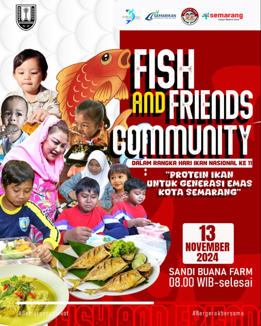 Dalam rangka Hari Ikan Nasional ke-11, Pemerintah Kota Semarang menggelar acara Fish and Friends Community dengan tema “Protein Ikan untuk Generasi Emas Kota Semarang”.