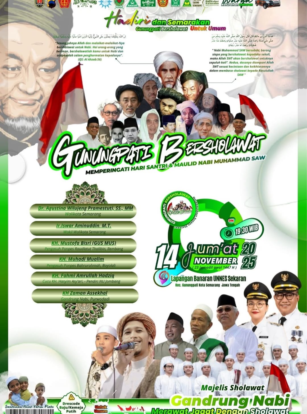 Mari bersatu dalam cinta Rasul, bersama-sama bersholawat untuk kedamaian Gunungpati dan Kota Semarang tercinta! 🌿