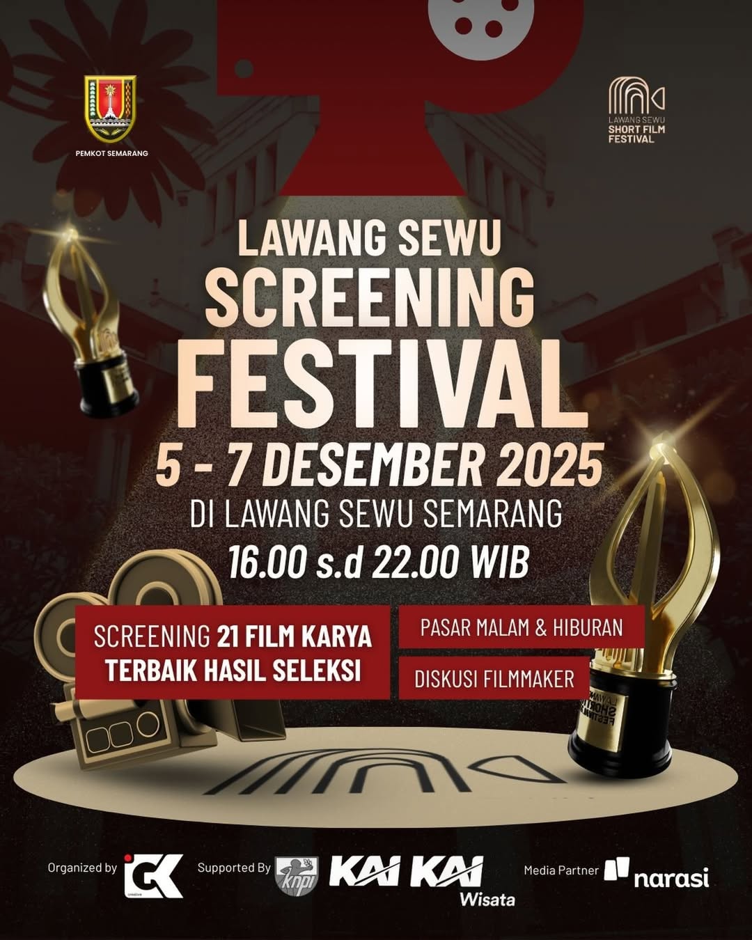 Lawang Sewu Screening Festival 2025 hadir untuk pertama kalinya! Siapkan diri kalian untuk menikmati pengalaman menonton 21 film yang lolos tahap seleksi dengan genre berbeda-beda.