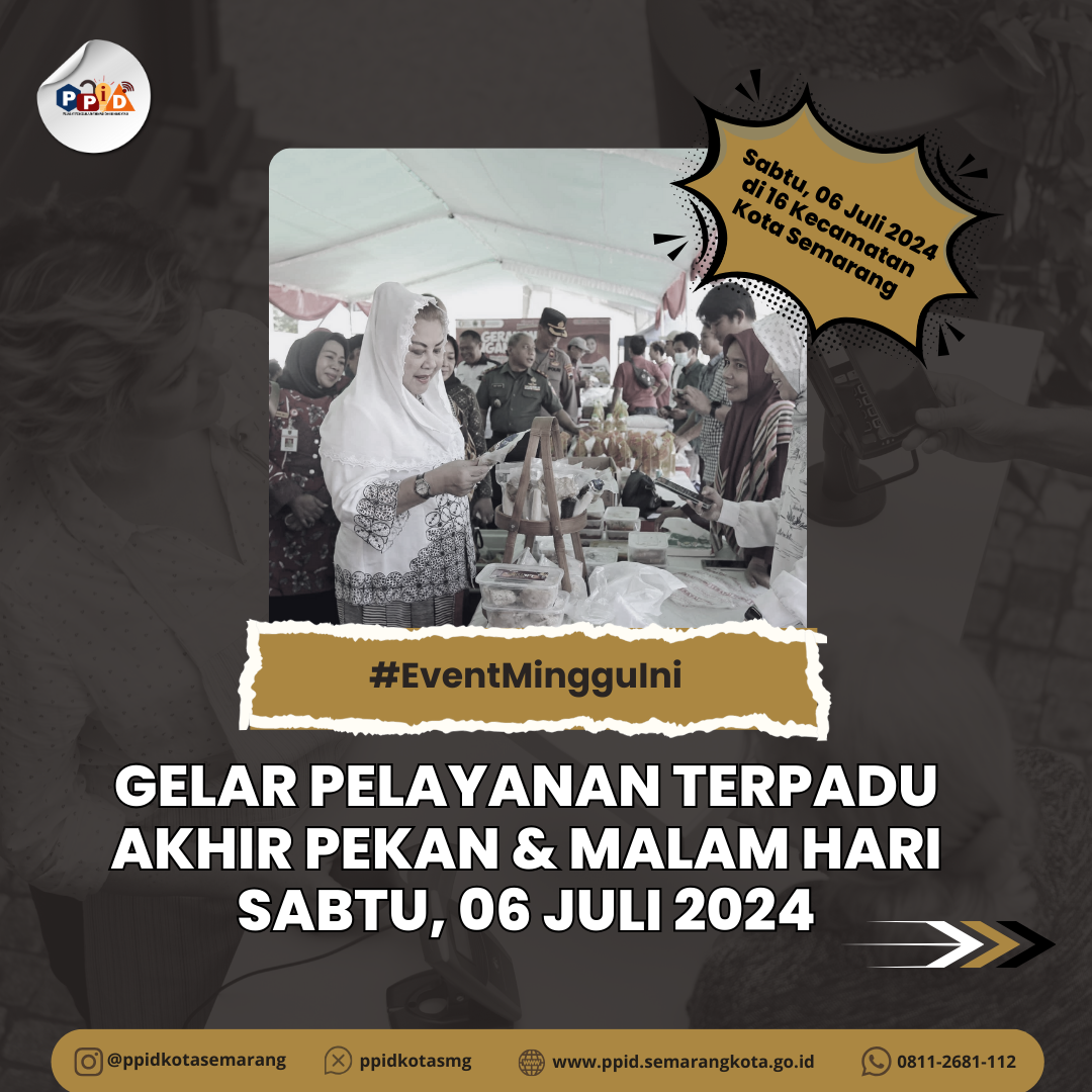 Siapa yang udah nungguin Pelayanan Akhir Pekan? Nah Pemerintah Kota Semarang kembali mengadakan Pelayanan Terpadu Akhir Pekan dan Malam Hari di 16 Kecamatan se-Kota Semarang, besok Sabtu (6/7) 2024. Yuk manfaatkan kegiatan ini untuk mengurus berbagai keperluanmu. Jangan sampai terlewat!