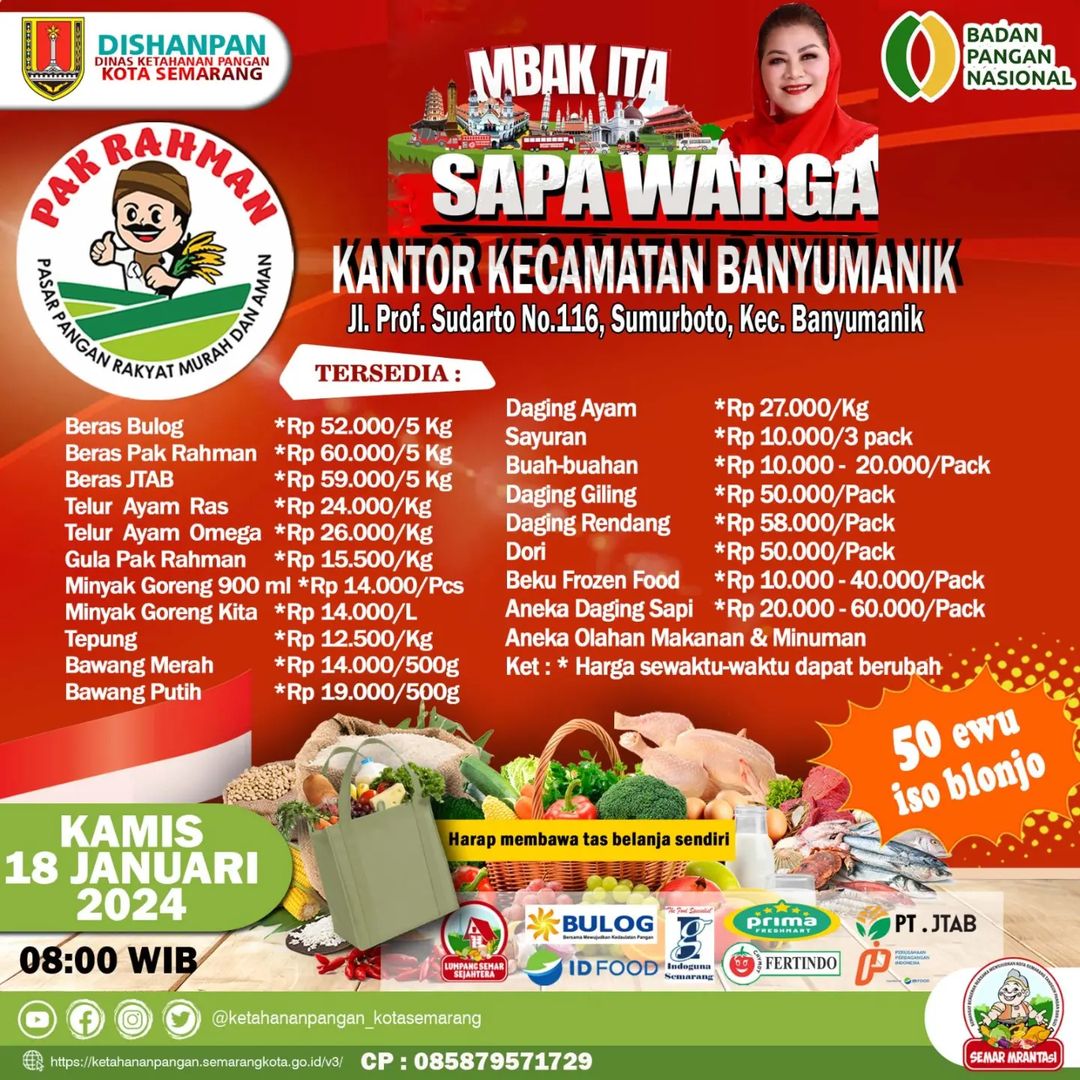 Jangan lupa, “PAK RAHMAN” Pasar Pangan Rakyat Murah dan Aman hadir dalam kegiatan “MBAK ITA SAPA WARGA” di