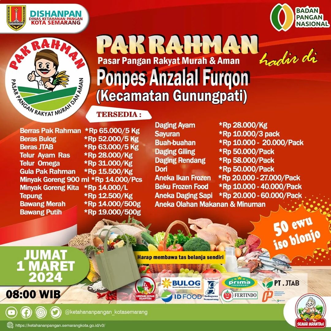 Halo #sobatpangan “PAK RAHMAN” Pasar Pangan Rakyat Murah dan Aman akan hadir di :