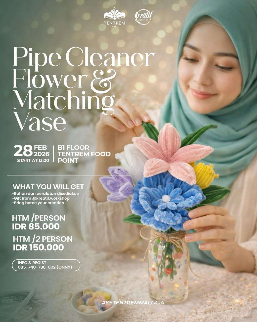 Yuk, waktunya bikin Pipe Cleaner Flower & Matching Vase versi kamu sendiri di workshop spesial barengย @kreatif.workshopย ๐ท