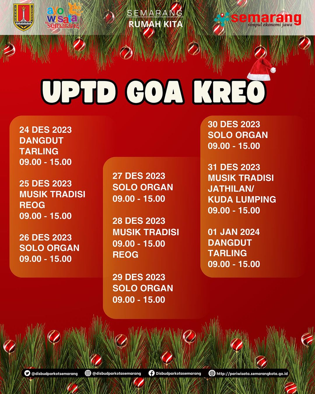 Rayakan libur Natal dan Tahun Baru di UPTD Goa Kreo Informasi lebih lanjut cek : @disbudparkotasemarang