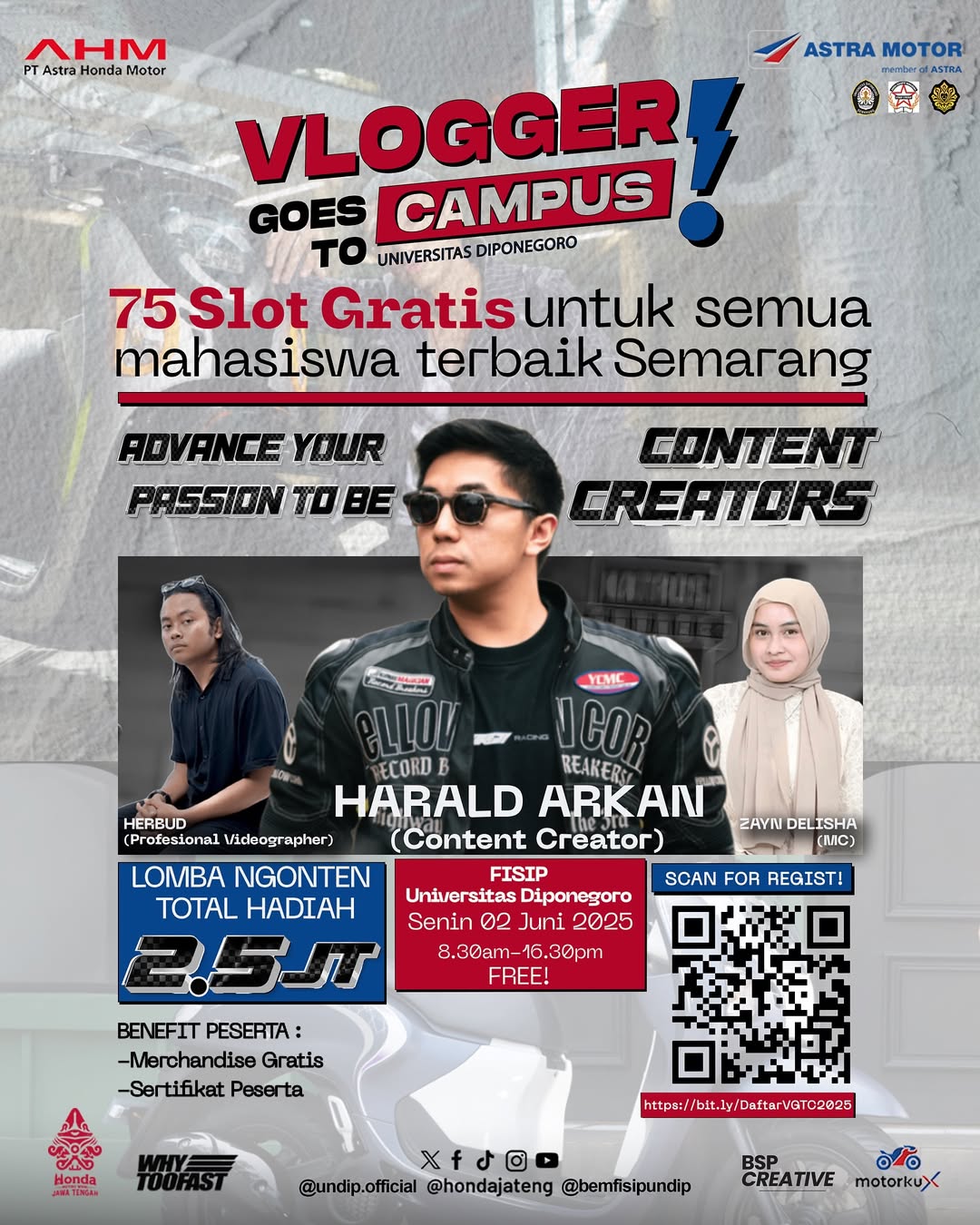 Honda Jateng ngajak kamu—mahasiswa Semarang yang aktif & kreatif—ikutan Vlogger Goes to Campus 2025!