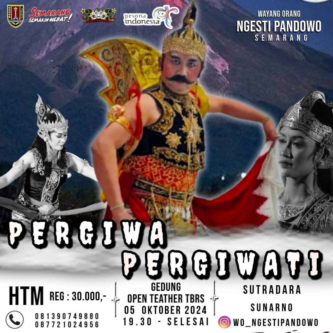 Datang & saksikan wayang orang dengan lakon : PERGIWA & PERGIWATI di Open Teather TBRS pukul 19.30T