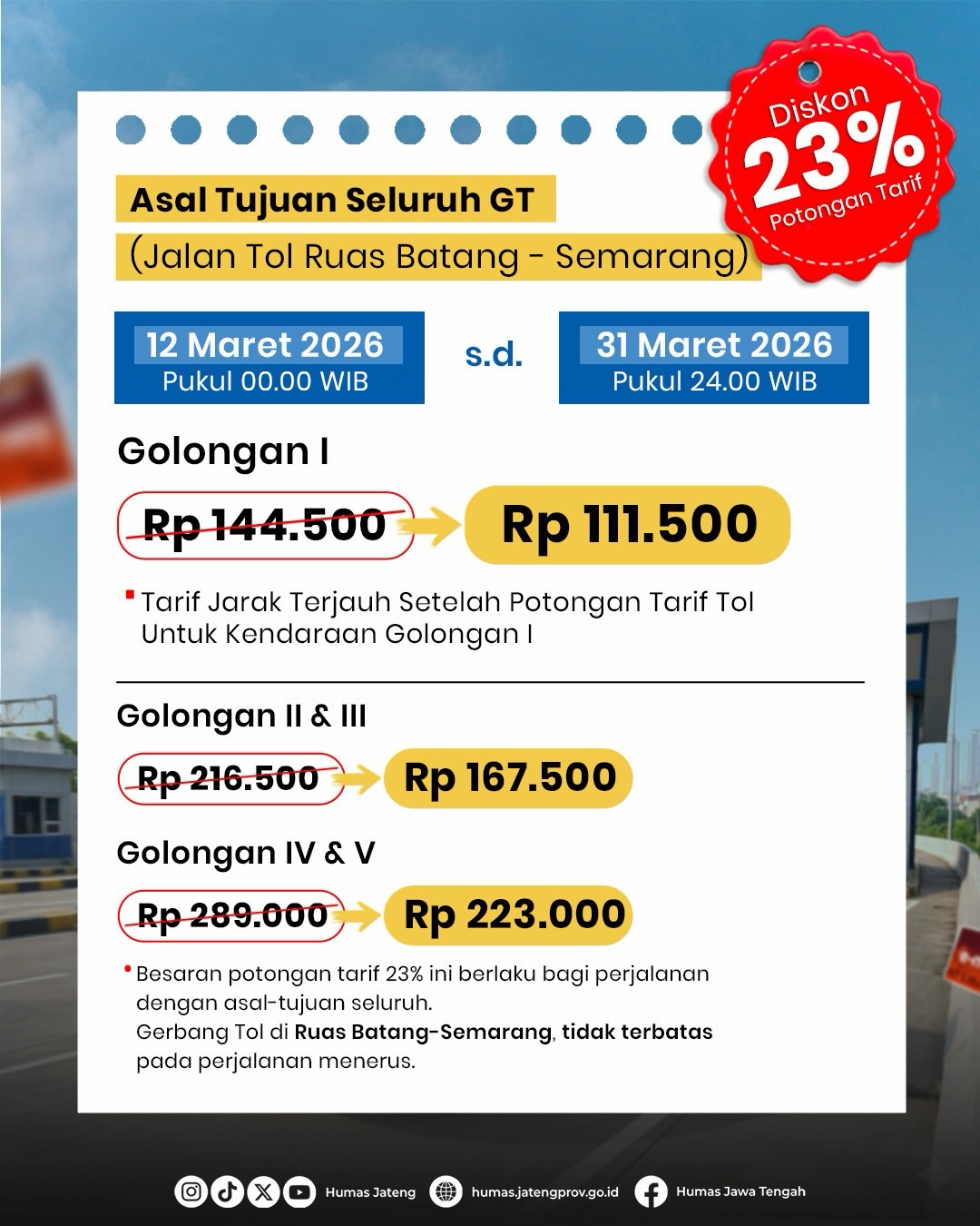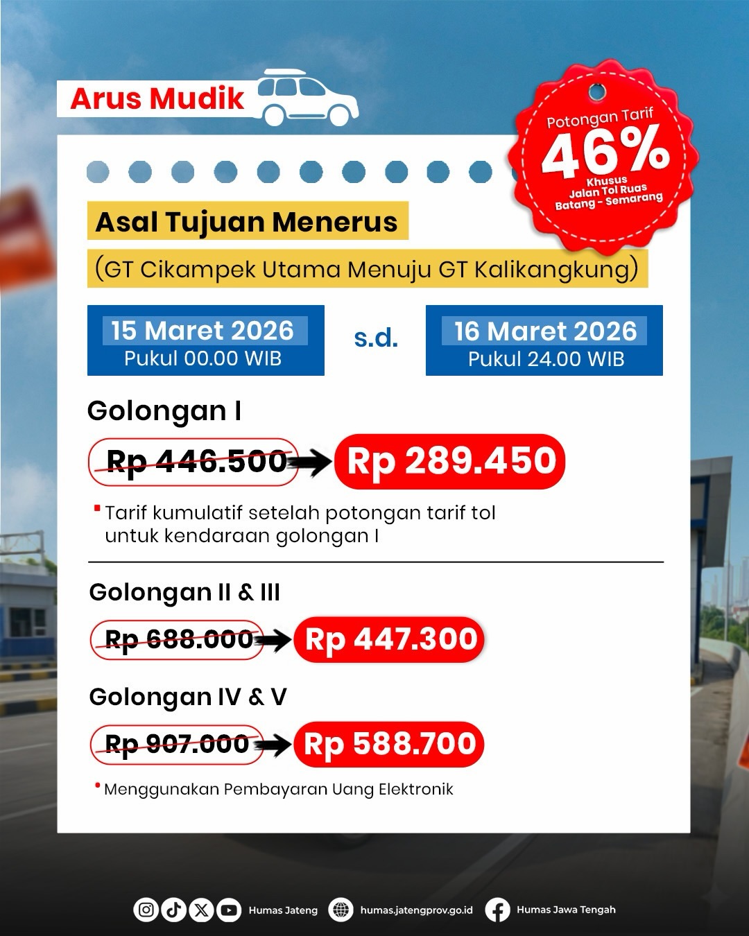 Ada diskon tarif tol yang bikin perjalanan makin ringan di kantong. Yuk manfaatkan dan tetap berkendara dengan aman!