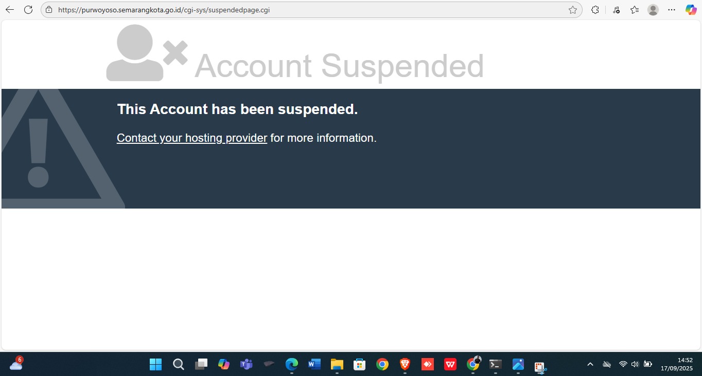 Menanggapi insiden ini, pihak berwenang telah mengambil tindakan cepat. Per tanggal 17 September 2025, website untuk sementara waktu tidak dapat diakses. Halaman utama saat ini menampilkan pesan “Account Suspended”. Hal ini dilakukan sebagai langkah darurat untuk menghentikan penyebaran konten berbahaya dan melakukan perbaikan sistem secara menyeluruh.