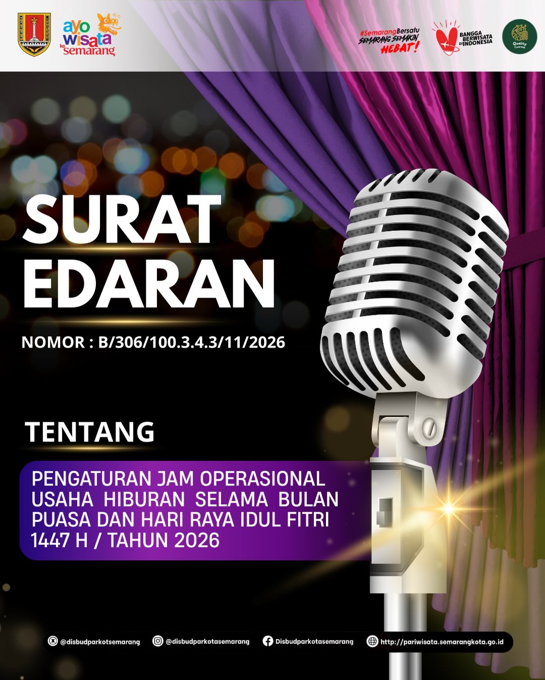 Menjelang bulan suci Ramadan 1447 H, Pemerintah Kota Semarang melalui Dinas Kebudayaan dan Pariwisata menerbitkan Surat Edaran Nomor: B/306/100.3.4.3/11/2026.