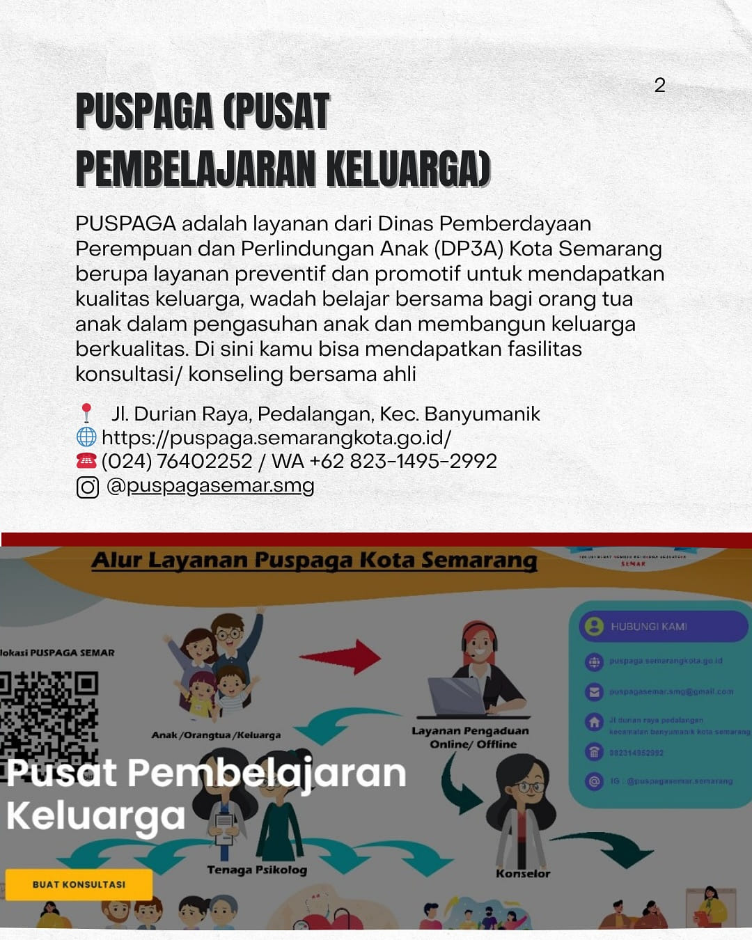 • Layanan: Konsultasi/konseling bersama ahli (Psikolog/Konselor), wadah belajar pengasuhan anak, dan layanan preventif.