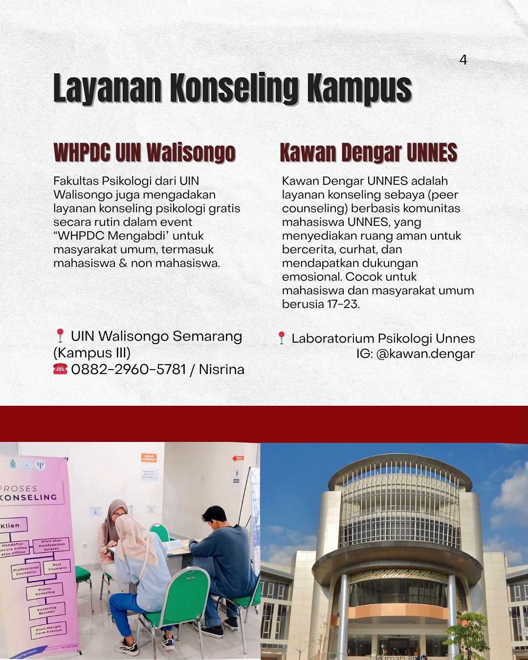 • Layanan: Konseling Sebaya (Peer Counseling) berbasis komunitas mahasiswa.